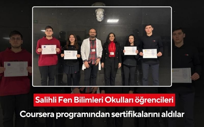 Salihli Fen Bilimleri Okulları Lise öğrencilerimiz, dünyanın en büyük online eğitim platformu Coursera programındaki eğitim süreçlerini başarıyla tamamladı ve uluslararası geçerliliğe sahip sertifikalarını aldı! Öğrencilerimiz, global eğitimde bir adım öne geçti.